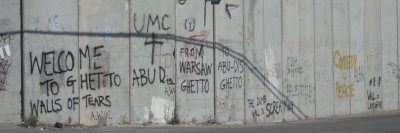 Last Sunday, the 28th, we took a tour of the Separation Wall. Our guide was Danny Seidman who works independent of the Israeli government but is an Israeli citizen who does a lot of advising and such for both the Israeli government and the U.S. ambassadors to Israel on the issues regarding the Palestinian Israeli conflict. The Israeli army is building this wall around Palestinian territories in order to decrease the acts of terrorism on the Israelis. It has stopped the bombings of the Second Intifada but has come at the big cost to the Palestinians. The wall disrupts daily life and has caused the death of individuals in emergency situations trying to get to hospitals outside the West Bank that have been delayed by the checkpoints. We went to Bethlehem University today in the West Bank and got to talk to some of the students there. One girl is from a town south of Hebron and a drive that should take 15 minutes now takes her about 2 hours. I think, if I remember right, the Israeli government does not support the army's construction of the wall and the UN has made a public statement against it. Here's some pictures of the wall.
